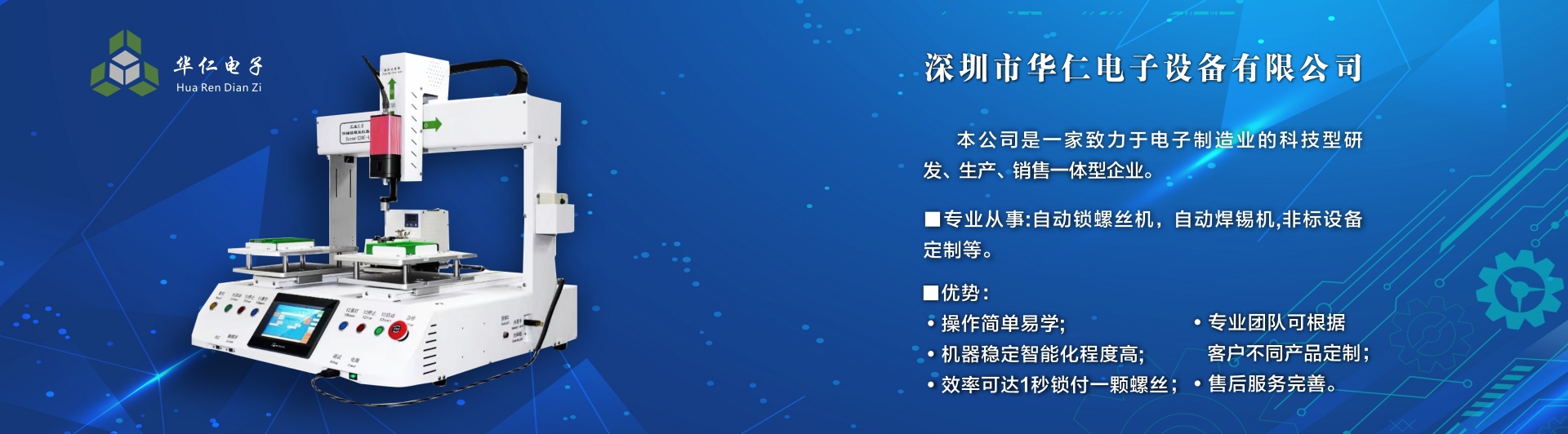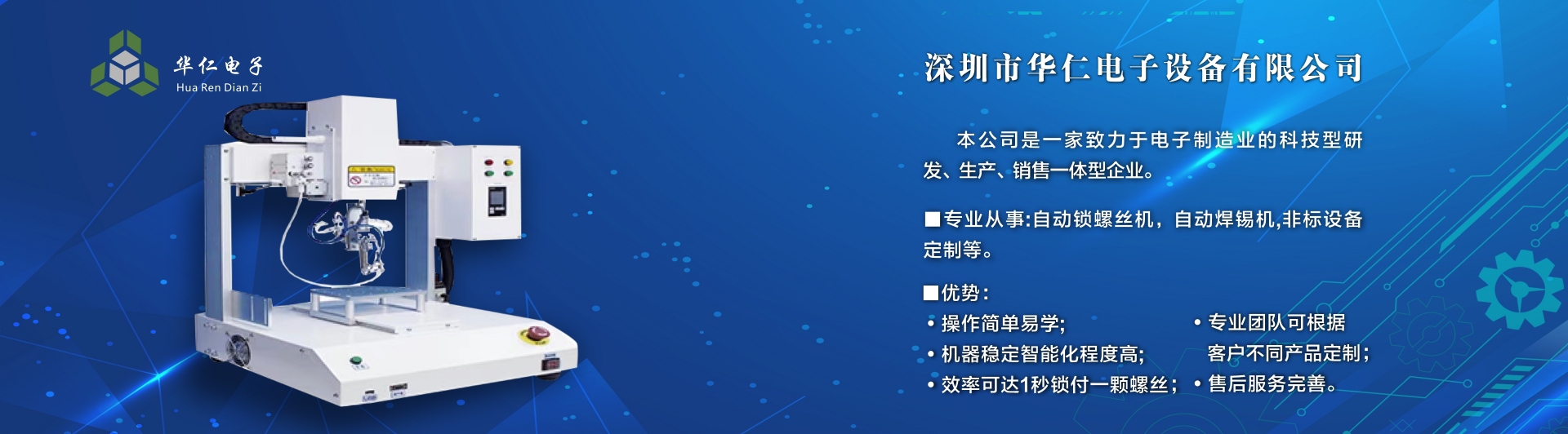 深圳市華仁電子設備有限公司是一家致力于電子制造業(yè)周邊設備的科技型研發(fā)、生產(chǎn)、銷售一體的企業(yè),專業(yè)從事:自動鎖螺絲機;自動焊錫機;非標設備定制機等,公司長期以來在行業(yè)中積累了豐富的經(jīng)驗,擁有專業(yè)的研發(fā)、技術、銷售支持工程團隊、各高級技術人才為客戶提供優(yōu)質(zhì)產(chǎn)品和服務,同時不斷吸取國內(nèi)外先進技術,更準確及時地為客戶提供優(yōu)質(zhì),性價比高的產(chǎn)品、公司以專業(yè)的售前、售中、售后服務贏得了客戶的信賴和好評,為客戶提供先進自動化設備一體式解決方案、